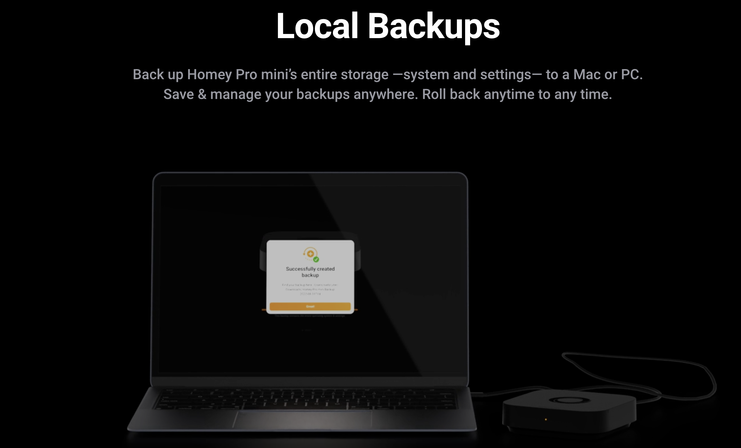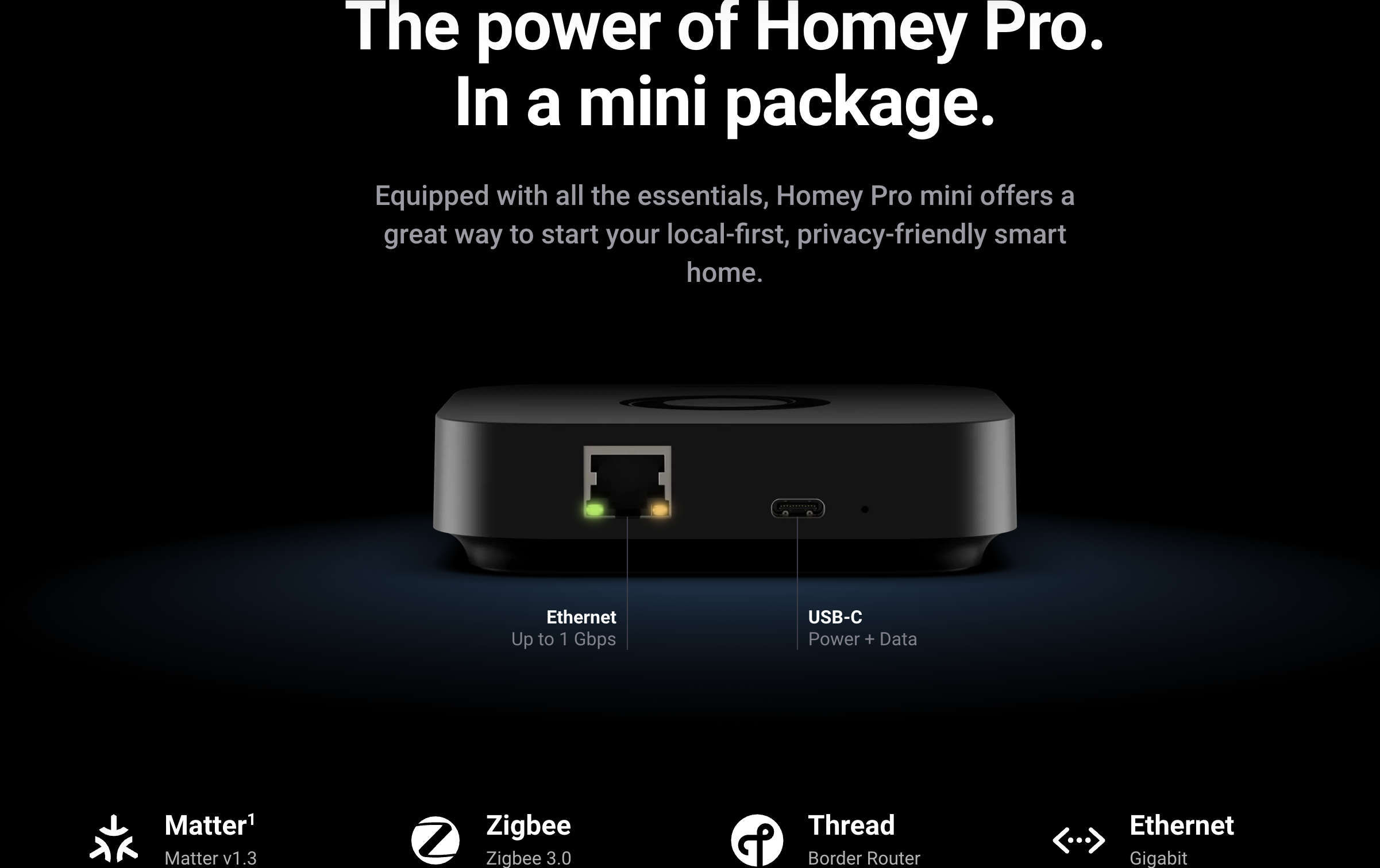 With built-in gigabit Ethernet and USB-C power/data connectivity, Homey Pro mini delivers reliable network performance