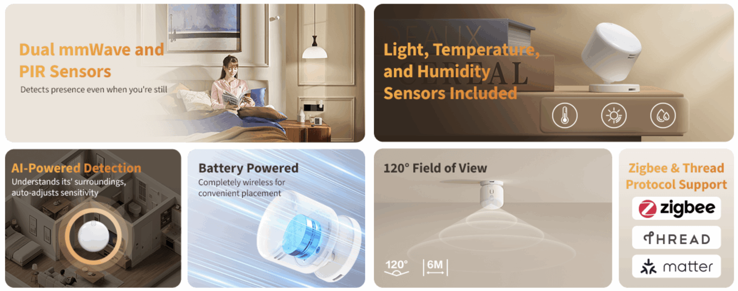 The FP2 supports Matter over Thread, ensuring seamless integration with all major smart home ecosystems. This future-proof technology guarantees interoperability and easy setup across different platforms and controllers.